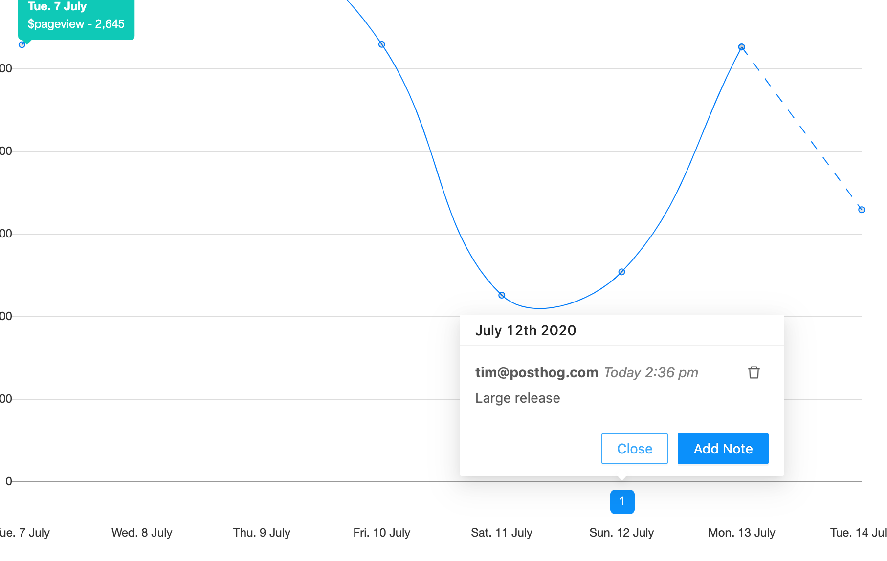 Digging through git commits to find out what changed to make the graphs go hay-wire? No more! You can now annotate when something happened (a big release, a bugfix or a launch) and make it super easy for your team-mates to figure out what's going on. Now global.