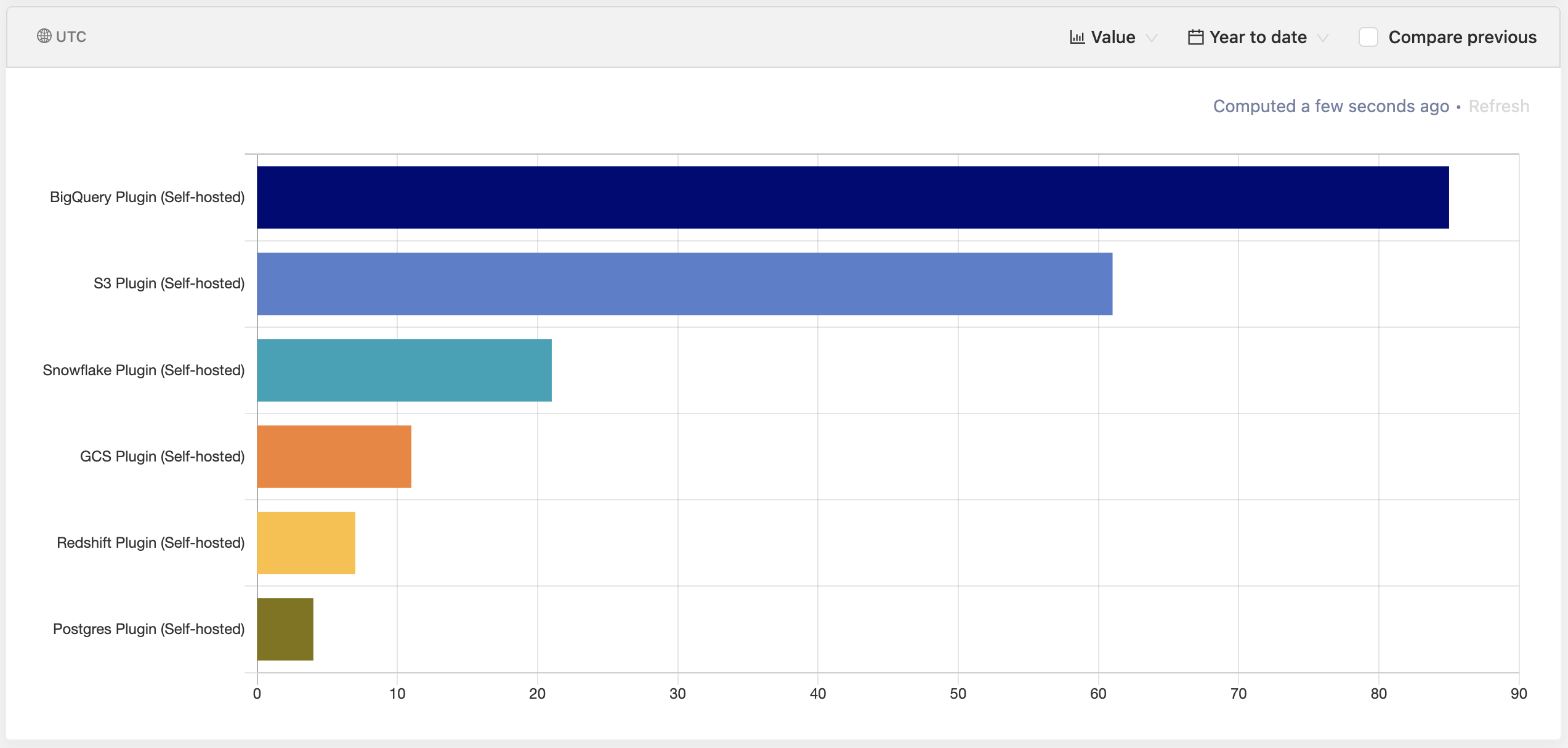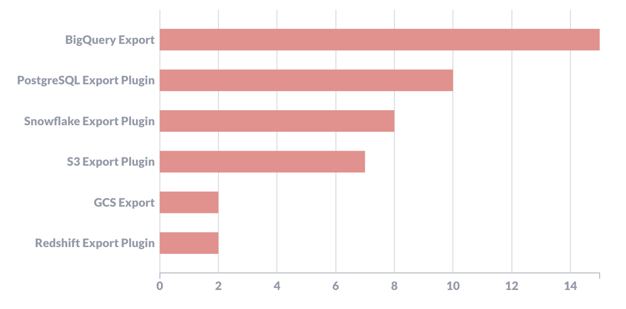 BigQuery is by far the most popular export destination, across both self-hosted and Cloud deployments.