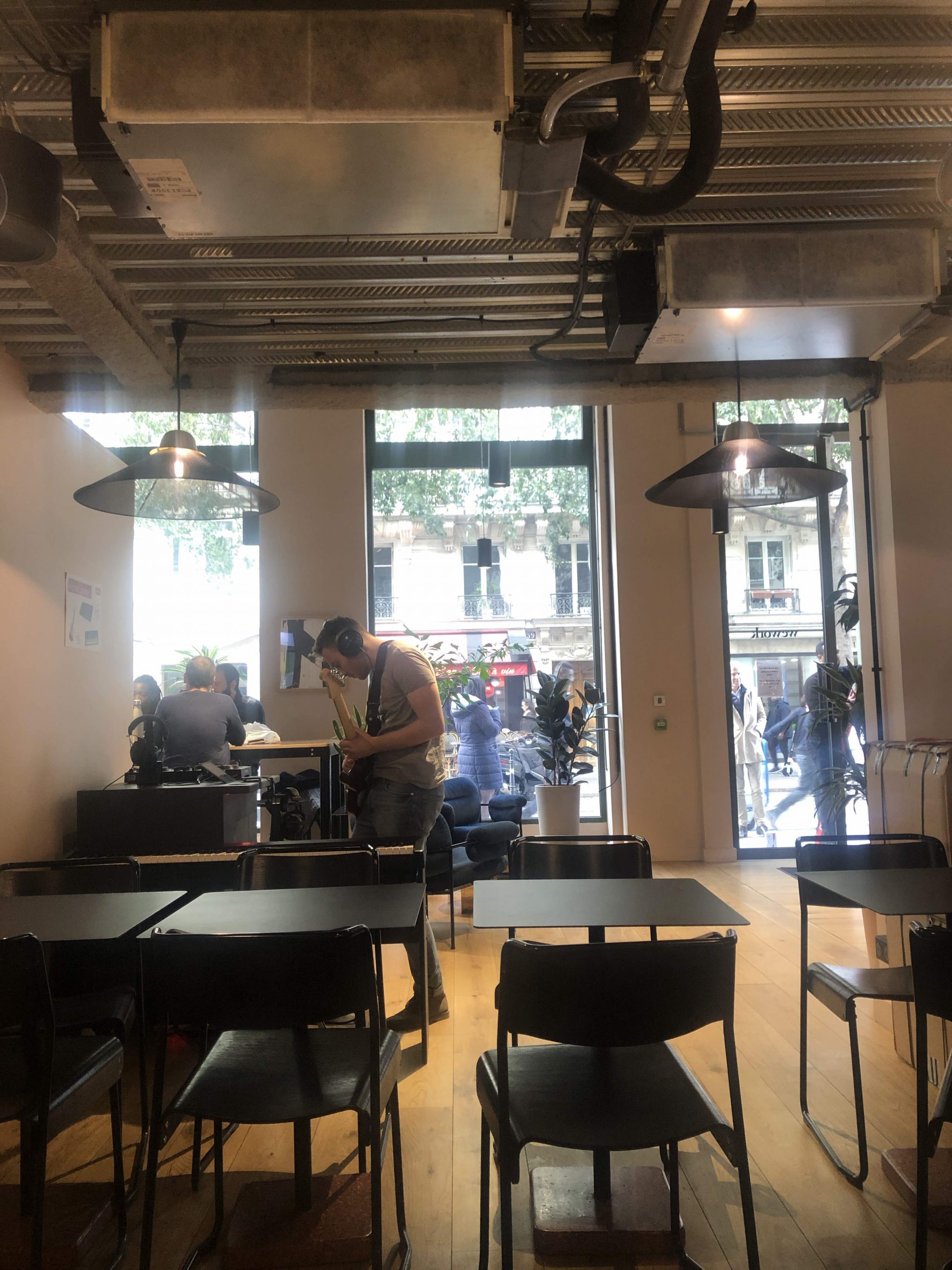 We grabbed a quick lunch then went to the nearest WeWork and got back to working. Tim found a guitar, the latest way to distract people who are coworking, it seems: